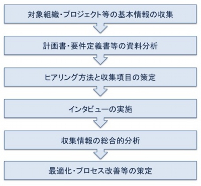 プロジェクト開始前、あるいは、途中のマイルストーン段階で、投資の適正判断や説明責任を果たすための客観的評価を行います。